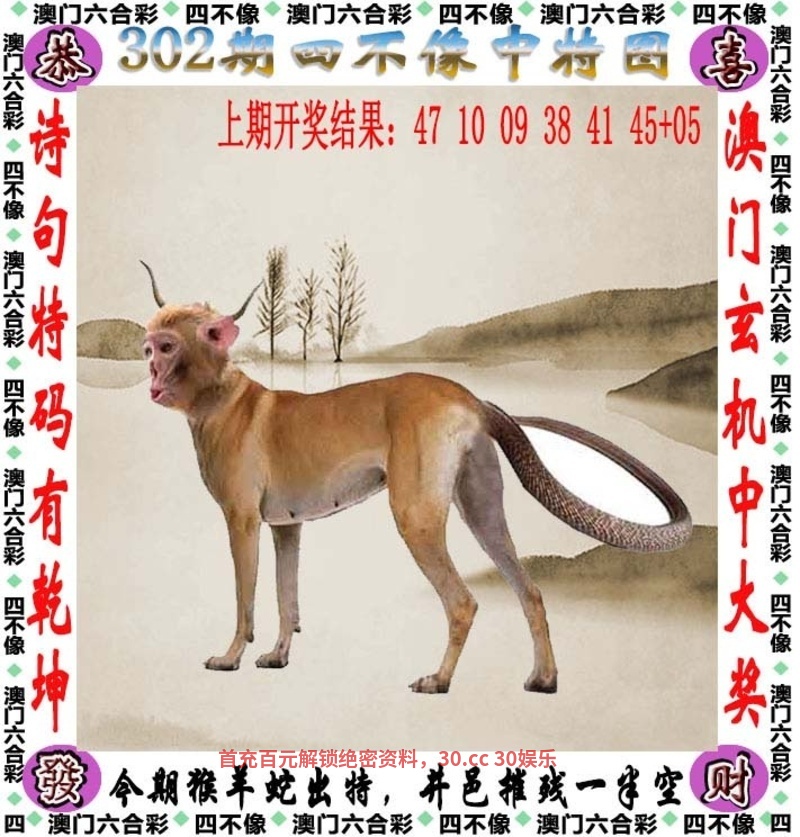 | 302期:男女中特[女肖💥羊鸡兔蛇]开:猴22错 |